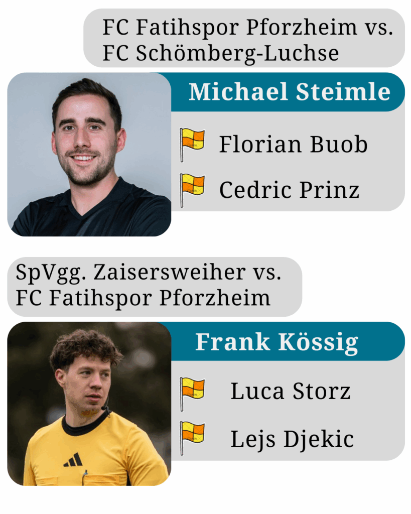 Frank Kössig übernahm die Leitung des Relegationsspiels SpVgg Zaisersweiher II vs. FC Fatihspor Pforzheim II, unterstützt von Luca Storz und Lejs Djekic. Auch hier zeigte das Team eine starke, souveräne Leistung in einer intensiven Partie!